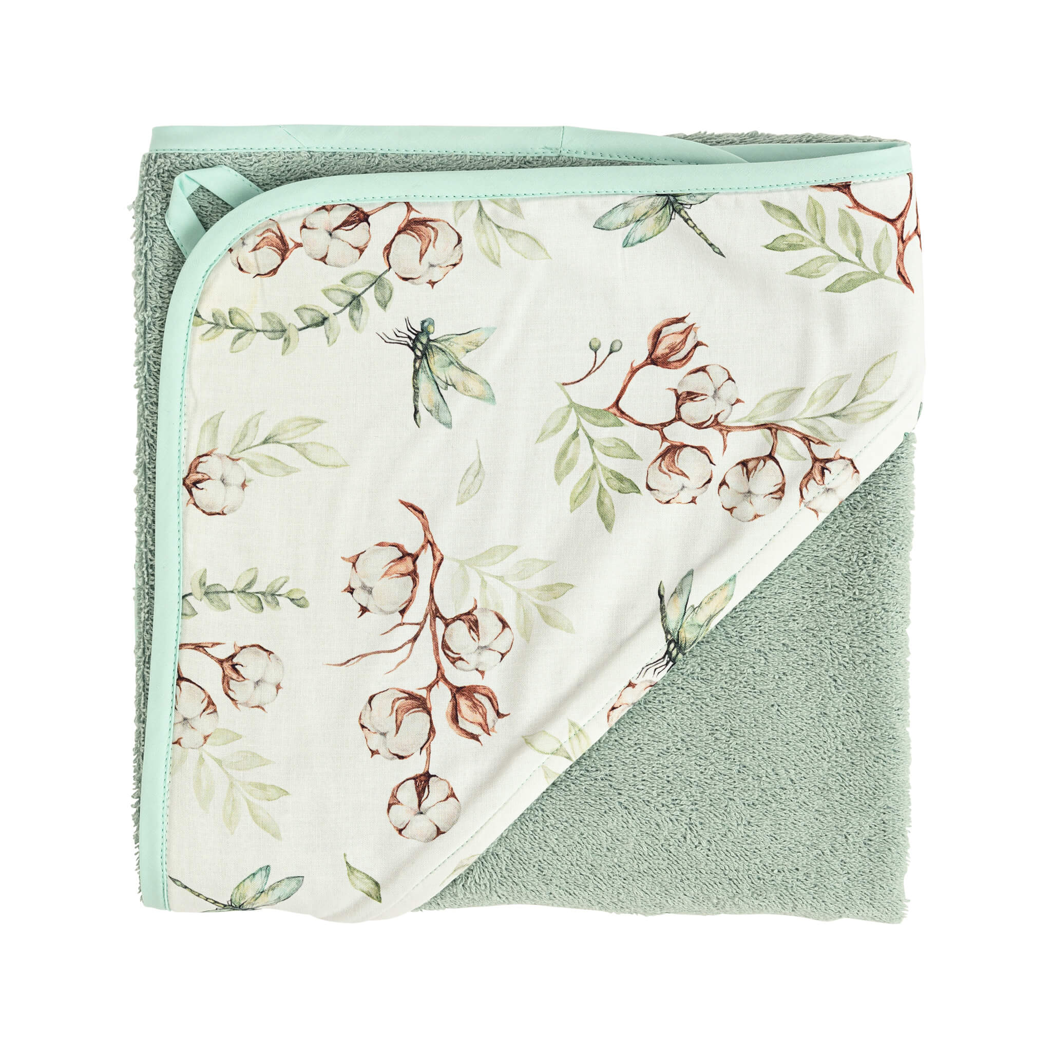 Produktinformationen "Kapuzenhandtuch 75x75 cm - Seegrün- Libelle"